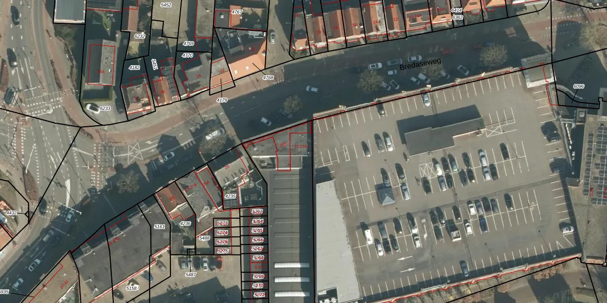 Bredaseweg 23-A is gelegen op kadastraal perceel OTH01S4234. Deze kadastrale aanduiding is uniek en wordt gebruikt door het Kadaster om eigendomsrechten en andere zakelijke rechten vast te leggen. Het perceel maakt onderdeel uit van de kadastrale gemeente Oosterhout.