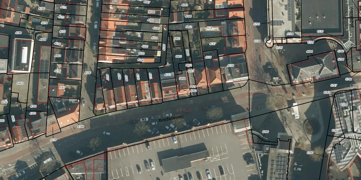 Het perceel waarop Bredaseweg 8 staat heeft een oppervlakte van 118 m². Dit is een middelgroot perceel. De perceeloppervlakte wordt geregistreerd door het Kadaster. Gedetailleerde informatie over de maten van dit perceel kunt u vinden in het rapport Kadastrale kaart met maatvoering van Bredaseweg 8.