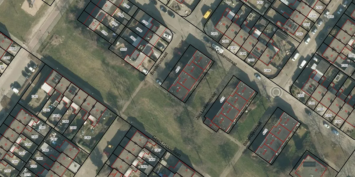 Het perceel waarop Brederostraat 33 staat heeft een oppervlakte van 480 m². Dit is een groot perceel. De perceeloppervlakte wordt geregistreerd door het Kadaster. Gedetailleerde informatie over de maten van dit perceel kunt u vinden in het rapport Kadastrale kaart met maatvoering van Brederostraat 33.