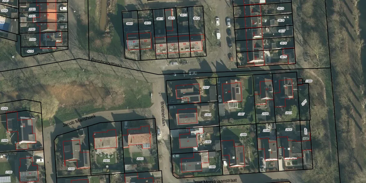 Het perceel waarop Breitnerlaan 1 staat heeft een oppervlakte van 366 m². Dit is een groot perceel. De perceeloppervlakte wordt geregistreerd door het Kadaster. Gedetailleerde informatie over de maten van dit perceel kunt u vinden in het rapport Kadastrale kaart met maatvoering van Breitnerlaan 1.