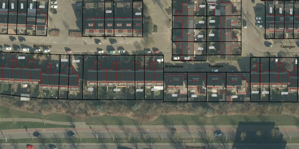 Het perceel waarop Bronkhorst 34 staat heeft een oppervlakte van 385 m². Dit is een groot perceel. De perceeloppervlakte wordt geregistreerd door het Kadaster. Gedetailleerde informatie over de maten van dit perceel kunt u vinden in het rapport Kadastrale kaart met maatvoering van Bronkhorst 34.