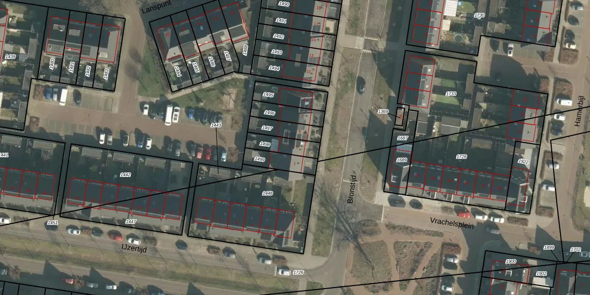 Gebruik de zoekbalk of klik op een perceel voor informatie over de adressen binnen dit perceel.