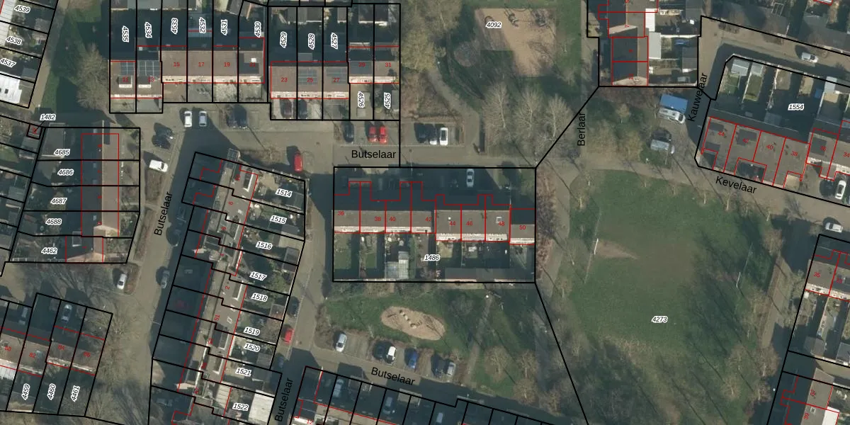 Het perceel waarop Butselaar 42 staat heeft een oppervlakte van 1280 m². Dit is een zeer groot perceel. De perceeloppervlakte wordt geregistreerd door het Kadaster. Gedetailleerde informatie over de maten van dit perceel kunt u vinden in het rapport Kadastrale kaart met maatvoering van Butselaar 42.