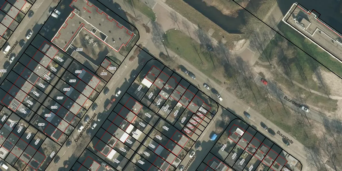 Gebruik de zoekbalk of klik op een perceel voor informatie over de adressen binnen dit perceel.