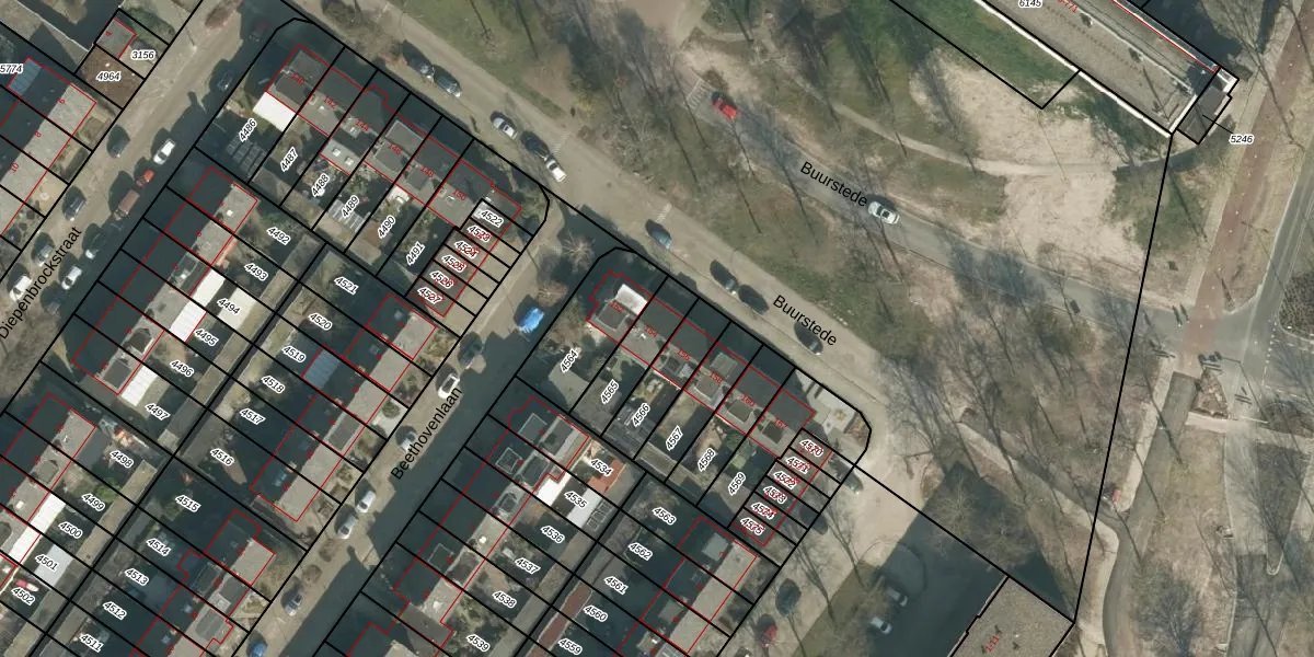 Het perceel waarop Buurstede 154 staat heeft een oppervlakte van 156 m². Dit is een middelgroot perceel. De perceeloppervlakte wordt geregistreerd door het Kadaster. Gedetailleerde informatie over de maten van dit perceel kunt u vinden in het rapport Kadastrale kaart met maatvoering van Buurstede 154.