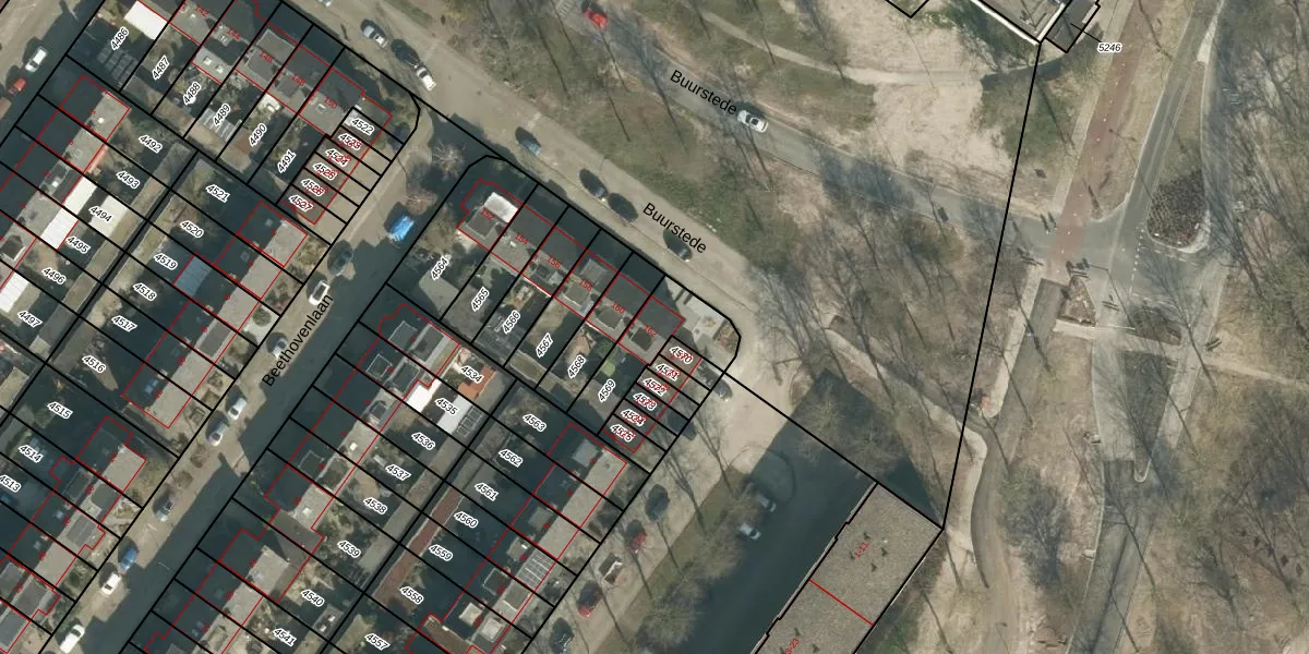 Het perceel waarop Buurstede 162 staat heeft een oppervlakte van 217 m². Dit is een middelgroot perceel. De perceeloppervlakte wordt geregistreerd door het Kadaster. Gedetailleerde informatie over de maten van dit perceel kunt u vinden in het rapport Kadastrale kaart met maatvoering van Buurstede 162.