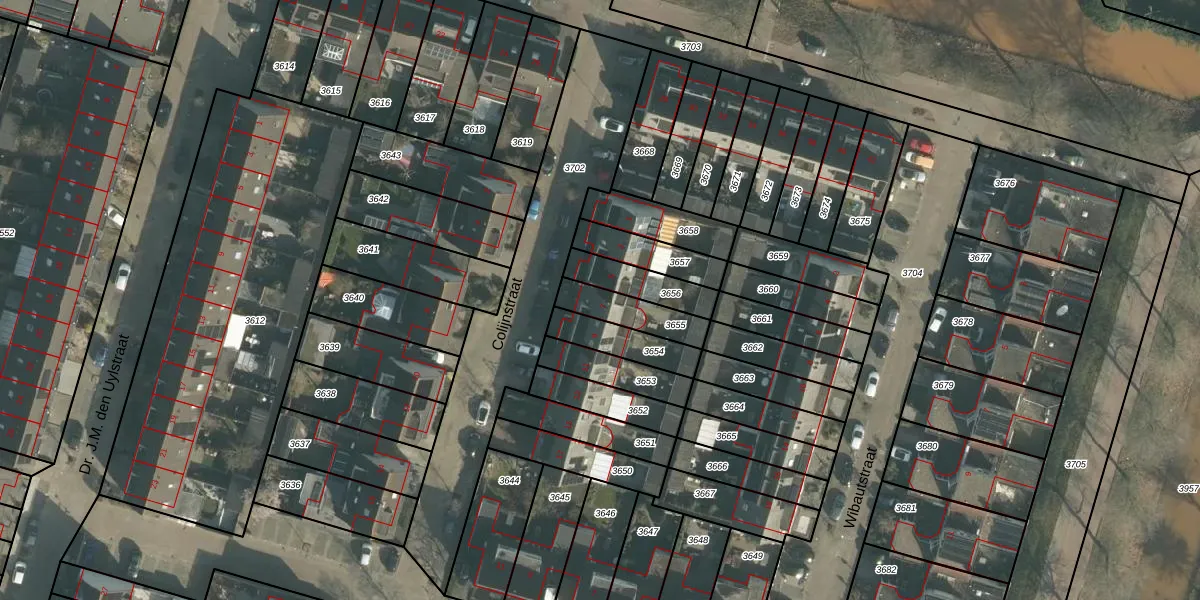 Gebruik de zoekbalk of klik op een perceel voor informatie over de adressen binnen dit perceel.