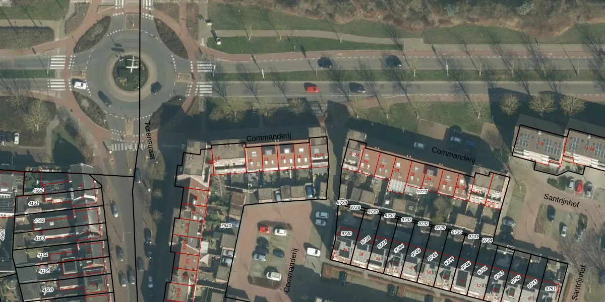 Het perceel waarop Commanderij 16 staat heeft een oppervlakte van 2185 m². Dit is een zeer groot perceel. De perceeloppervlakte wordt geregistreerd door het Kadaster. Gedetailleerde informatie over de maten van dit perceel kunt u vinden in het rapport Kadastrale kaart met maatvoering van Commanderij 16.