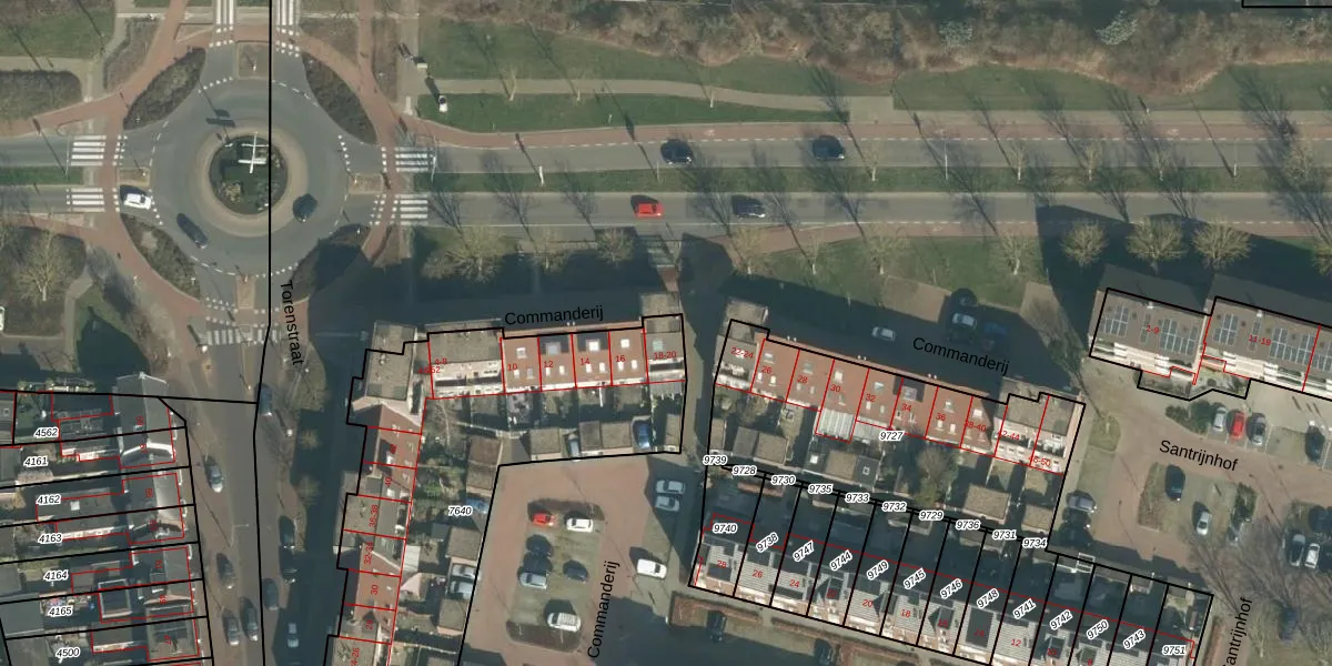 Het perceel waarop Commanderij 20 staat heeft een oppervlakte van 2185 m². Dit is een zeer groot perceel. De perceeloppervlakte wordt geregistreerd door het Kadaster. Gedetailleerde informatie over de maten van dit perceel kunt u vinden in het rapport Kadastrale kaart met maatvoering van Commanderij 20.