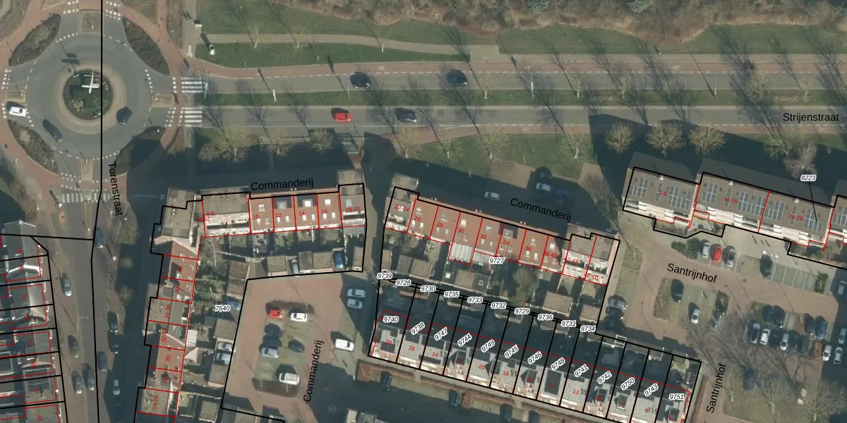 Het perceel waarop Commanderij 26 staat heeft een oppervlakte van 1034 m². Dit is een zeer groot perceel. De perceeloppervlakte wordt geregistreerd door het Kadaster. Gedetailleerde informatie over de maten van dit perceel kunt u vinden in het rapport Kadastrale kaart met maatvoering van Commanderij 26.