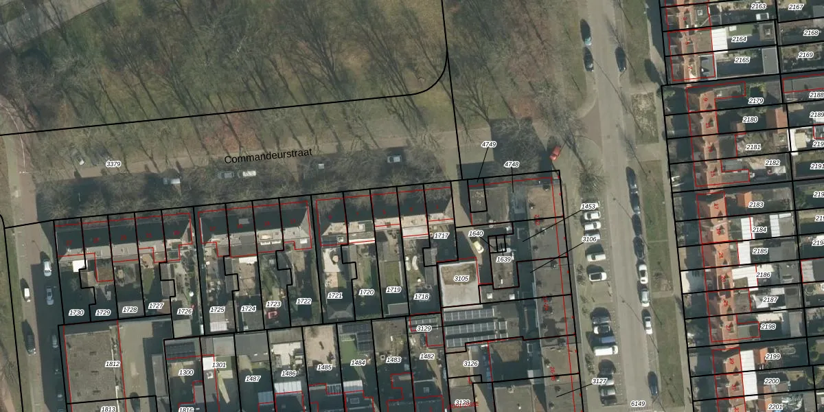 Het perceel waarop Commandeurstraat 3 staat heeft een oppervlakte van 215 m². Dit is een middelgroot perceel. De perceeloppervlakte wordt geregistreerd door het Kadaster. Gedetailleerde informatie over de maten van dit perceel kunt u vinden in het rapport Kadastrale kaart met maatvoering van Commandeurstraat 3.