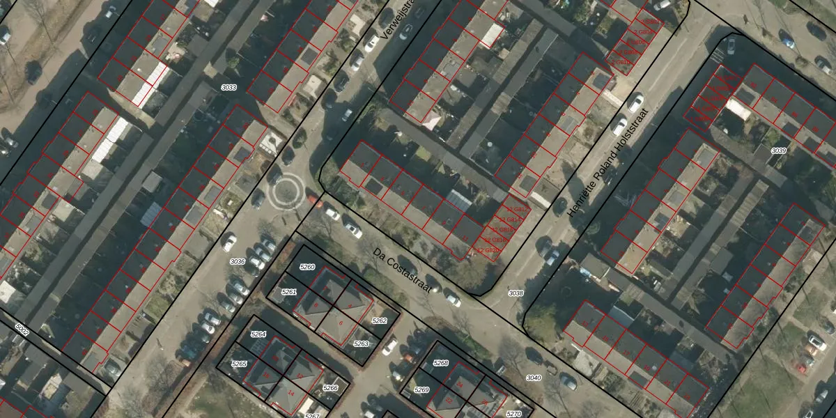 Het perceel waarop Da Costastraat 7 staat heeft een oppervlakte van 4412 m². Dit is een zeer groot perceel. De perceeloppervlakte wordt geregistreerd door het Kadaster. Gedetailleerde informatie over de maten van dit perceel kunt u vinden in het rapport Kadastrale kaart met maatvoering van Da Costastraat 7.