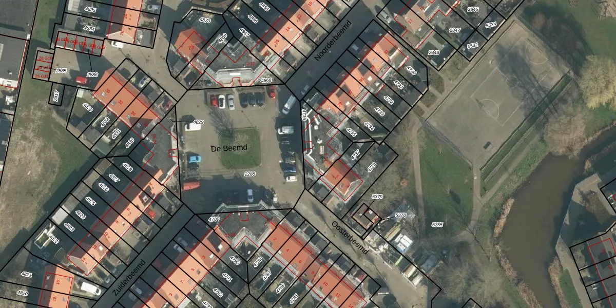 Het perceel waarop De Beemd 3 staat heeft een oppervlakte van 256 m². Dit is een middelgroot perceel. De perceeloppervlakte wordt geregistreerd door het Kadaster. Gedetailleerde informatie over de maten van dit perceel kunt u vinden in het rapport Kadastrale kaart met maatvoering van De Beemd 3.