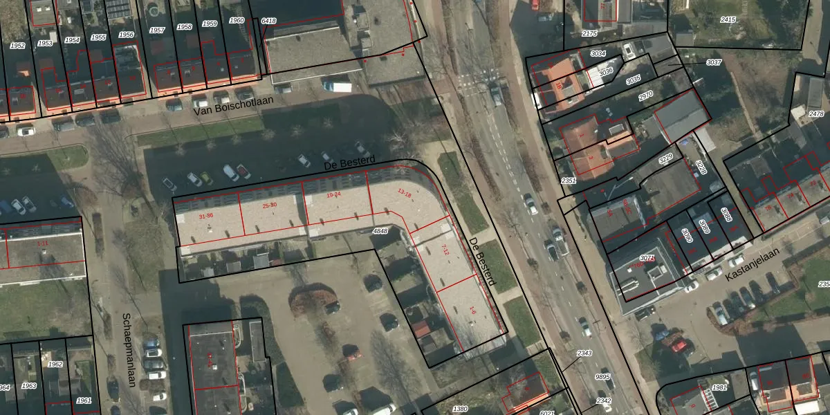 De Besterd 14 is gelegen op kadastraal perceel OTH01M4848. Deze kadastrale aanduiding is uniek en wordt gebruikt door het Kadaster om eigendomsrechten en andere zakelijke rechten vast te leggen. Het perceel maakt onderdeel uit van de kadastrale gemeente Oosterhout.