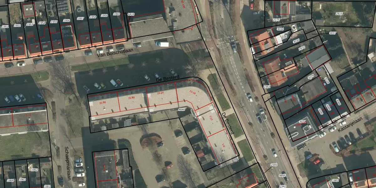 Het perceel waarop De Besterd 17 staat heeft een oppervlakte van 1887 m². Dit is een zeer groot perceel. De perceeloppervlakte wordt geregistreerd door het Kadaster. Gedetailleerde informatie over de maten van dit perceel kunt u vinden in het rapport Kadastrale kaart met maatvoering van De Besterd 17.