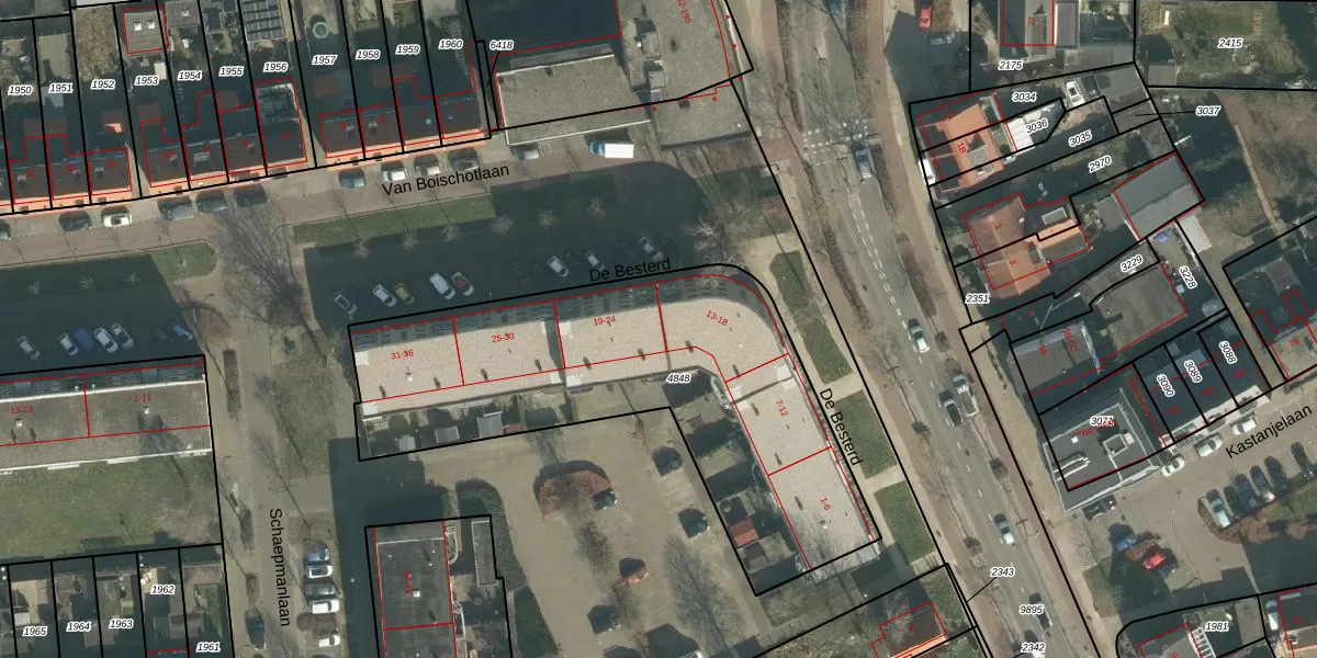 De Besterd 20 is gelegen op kadastraal perceel OTH01M4848. Deze kadastrale aanduiding is uniek en wordt gebruikt door het Kadaster om eigendomsrechten en andere zakelijke rechten vast te leggen. Het perceel maakt onderdeel uit van de kadastrale gemeente Oosterhout.