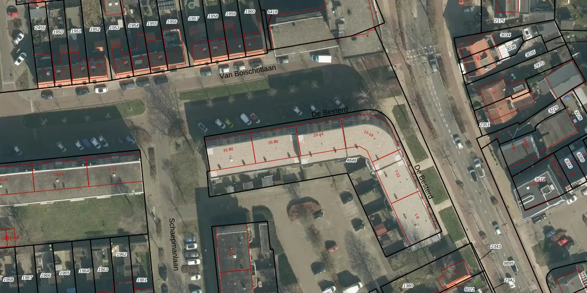 Het perceel waarop De Besterd 27 staat heeft een oppervlakte van 1887 m². Dit is een zeer groot perceel. De perceeloppervlakte wordt geregistreerd door het Kadaster. Gedetailleerde informatie over de maten van dit perceel kunt u vinden in het rapport Kadastrale kaart met maatvoering van De Besterd 27.