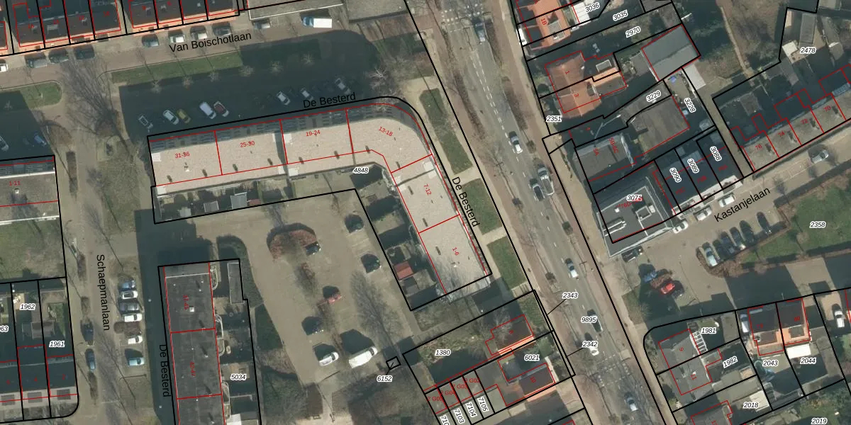 Het perceel waarop De Besterd 9 staat heeft een oppervlakte van 1887 m². Dit is een zeer groot perceel. De perceeloppervlakte wordt geregistreerd door het Kadaster. Gedetailleerde informatie over de maten van dit perceel kunt u vinden in het rapport Kadastrale kaart met maatvoering van De Besterd 9.