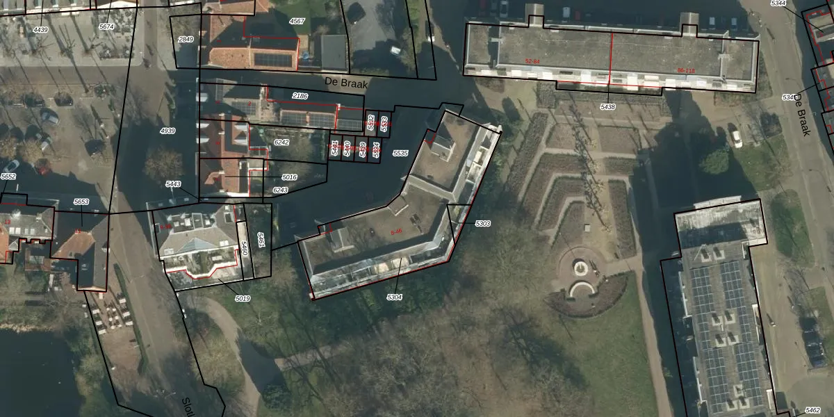 Het perceel waarop De Braak 22 staat heeft een oppervlakte van 920 m². Dit is een groot perceel. De perceeloppervlakte wordt geregistreerd door het Kadaster. Gedetailleerde informatie over de maten van dit perceel kunt u vinden in het rapport Kadastrale kaart met maatvoering van De Braak 22.