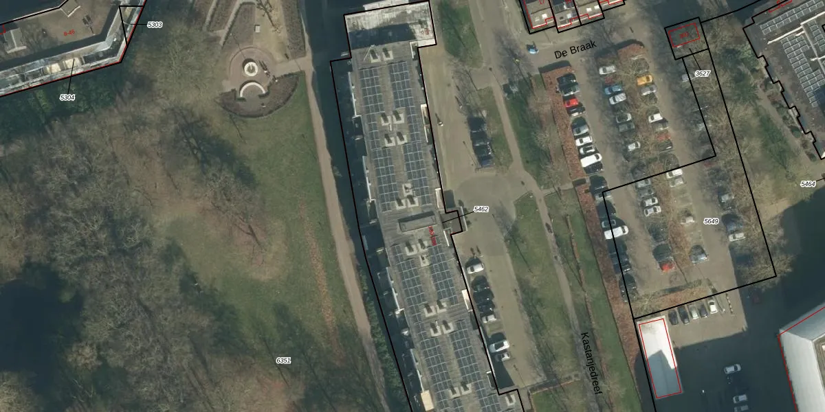 Het perceel waarop De Braak 286 staat heeft een oppervlakte van 2419 m². Dit is een zeer groot perceel. De perceeloppervlakte wordt geregistreerd door het Kadaster. Gedetailleerde informatie over de maten van dit perceel kunt u vinden in het rapport Kadastrale kaart met maatvoering van De Braak 286.