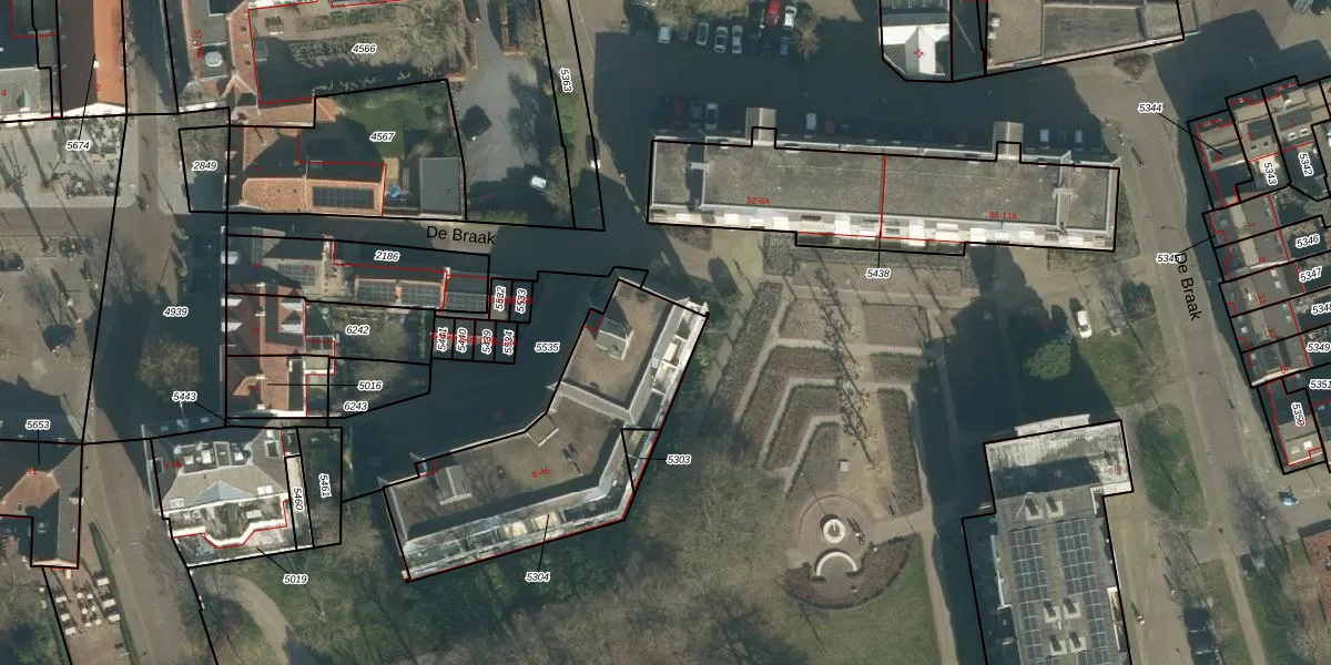 Het perceel waarop De Braak 42 staat heeft een oppervlakte van 920 m². Dit is een groot perceel. De perceeloppervlakte wordt geregistreerd door het Kadaster. Gedetailleerde informatie over de maten van dit perceel kunt u vinden in het rapport Kadastrale kaart met maatvoering van De Braak 42.