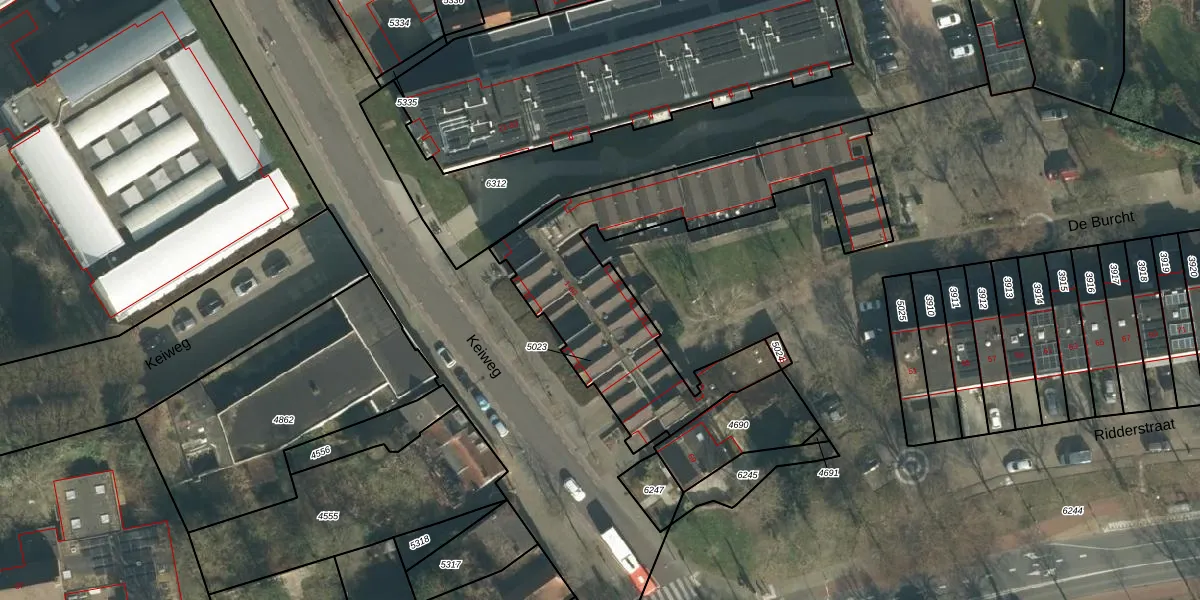 De Burcht 25 is gelegen op kadastraal perceel OTH01S5023. Deze kadastrale aanduiding is uniek en wordt gebruikt door het Kadaster om eigendomsrechten en andere zakelijke rechten vast te leggen. Het perceel maakt onderdeel uit van de kadastrale gemeente Oosterhout.