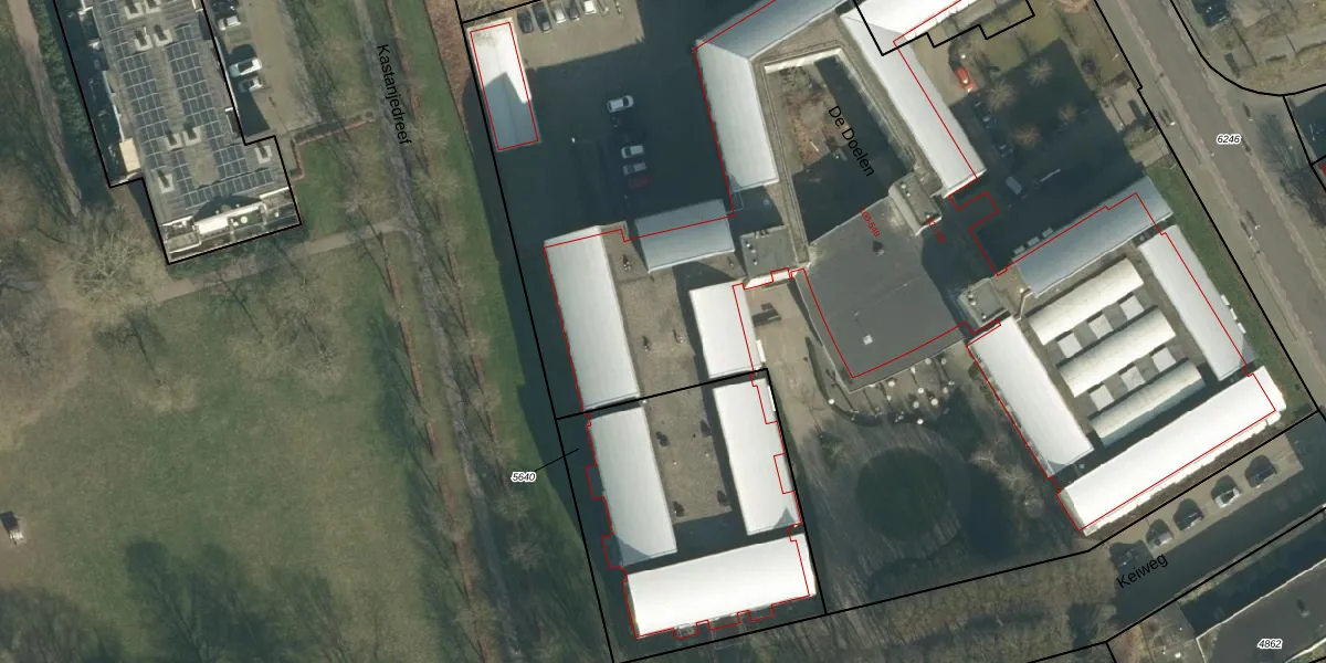 Het perceel waarop De Doelen 101 staat heeft een oppervlakte van 9790 m². Dit is een zeer groot perceel. De perceeloppervlakte wordt geregistreerd door het Kadaster. Gedetailleerde informatie over de maten van dit perceel kunt u vinden in het rapport Kadastrale kaart met maatvoering van De Doelen 101.