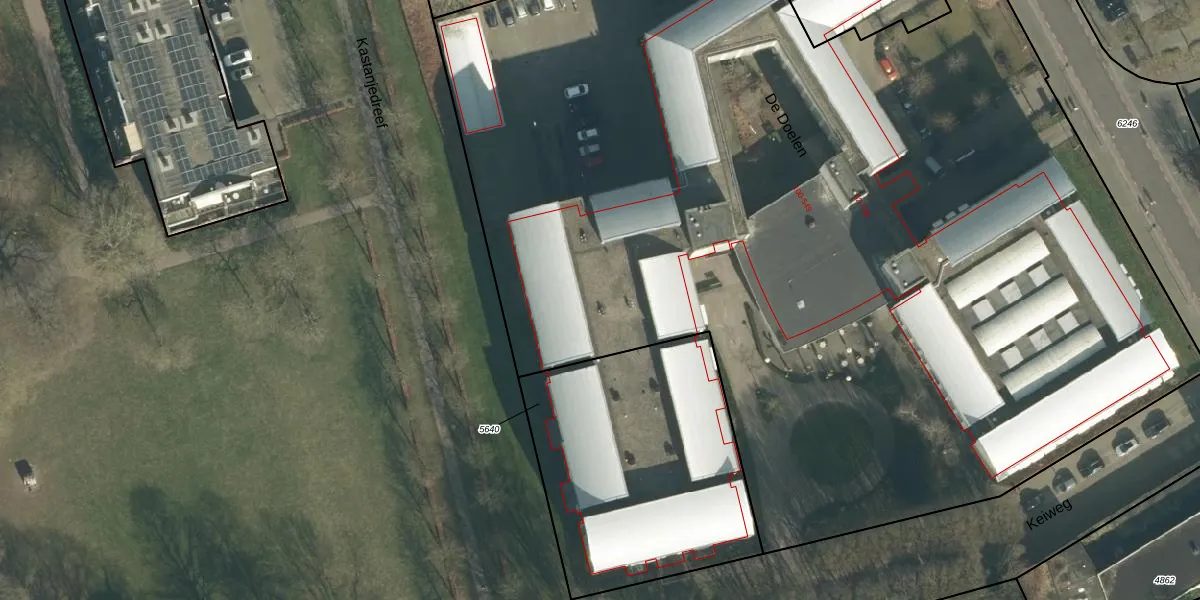 Het perceel waarop De Doelen 107 staat heeft een oppervlakte van 9790 m². Dit is een zeer groot perceel. De perceeloppervlakte wordt geregistreerd door het Kadaster. Gedetailleerde informatie over de maten van dit perceel kunt u vinden in het rapport Kadastrale kaart met maatvoering van De Doelen 107.