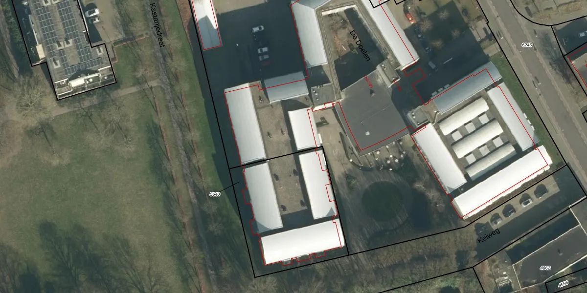 Het perceel waarop De Doelen 303 staat heeft een oppervlakte van 9790 m². Dit is een zeer groot perceel. De perceeloppervlakte wordt geregistreerd door het Kadaster. Gedetailleerde informatie over de maten van dit perceel kunt u vinden in het rapport Kadastrale kaart met maatvoering van De Doelen 303.