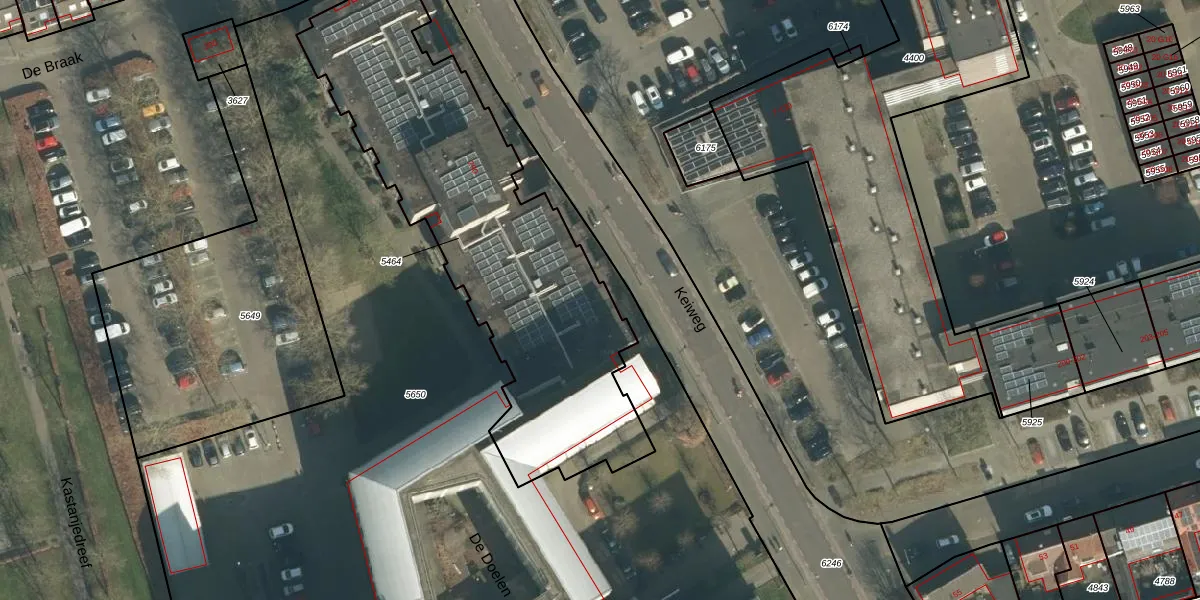Het perceel waarop De Doelen 304 staat heeft een oppervlakte van 1825 m². Dit is een zeer groot perceel. De perceeloppervlakte wordt geregistreerd door het Kadaster. Gedetailleerde informatie over de maten van dit perceel kunt u vinden in het rapport Kadastrale kaart met maatvoering van De Doelen 304.