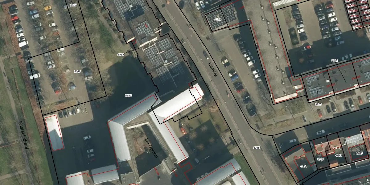 Het perceel waarop De Doelen 325 staat heeft een oppervlakte van 1825 m². Dit is een zeer groot perceel. De perceeloppervlakte wordt geregistreerd door het Kadaster. Gedetailleerde informatie over de maten van dit perceel kunt u vinden in het rapport Kadastrale kaart met maatvoering van De Doelen 325.