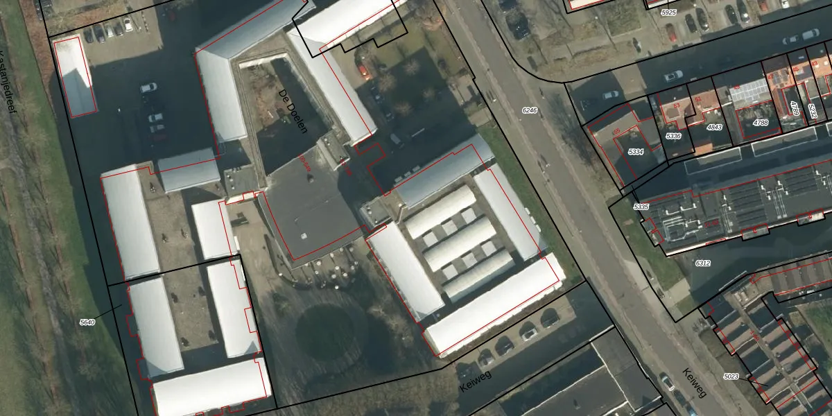 Het perceel waarop De Doelen 333 staat heeft een oppervlakte van 9790 m². Dit is een zeer groot perceel. De perceeloppervlakte wordt geregistreerd door het Kadaster. Gedetailleerde informatie over de maten van dit perceel kunt u vinden in het rapport Kadastrale kaart met maatvoering van De Doelen 333.
