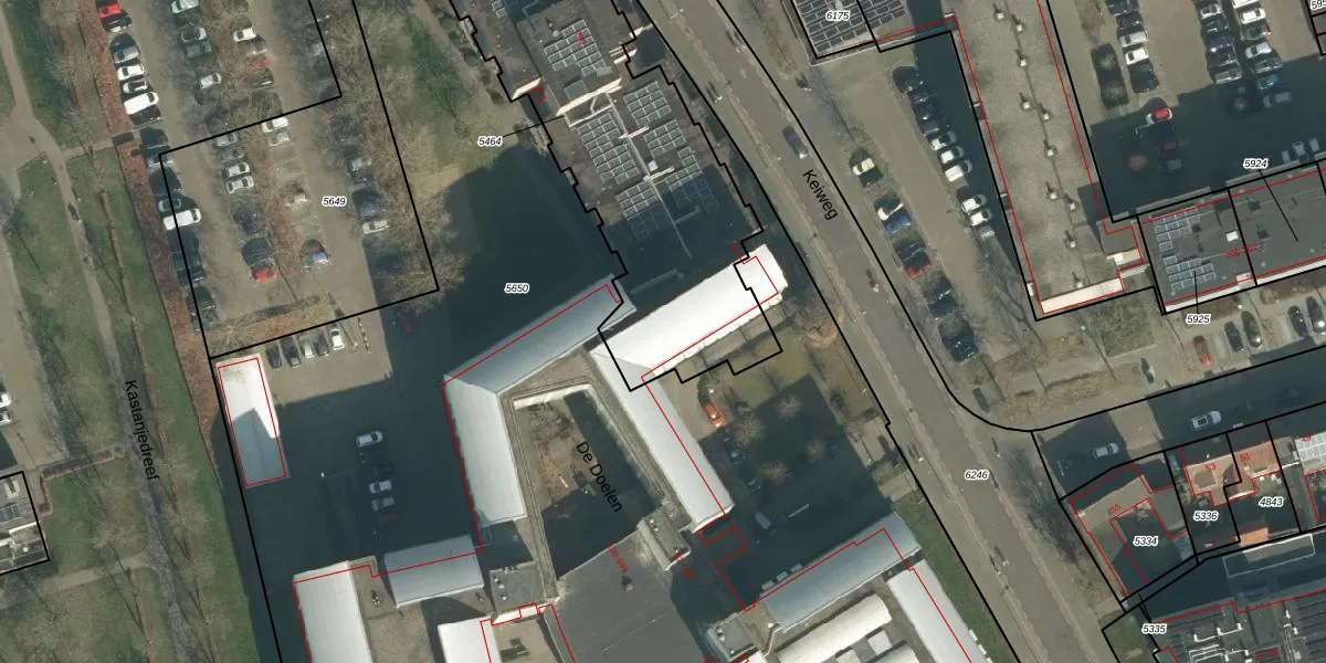 Het perceel waarop De Doelen 427 staat heeft een oppervlakte van 1825 m². Dit is een zeer groot perceel. De perceeloppervlakte wordt geregistreerd door het Kadaster. Gedetailleerde informatie over de maten van dit perceel kunt u vinden in het rapport Kadastrale kaart met maatvoering van De Doelen 427.