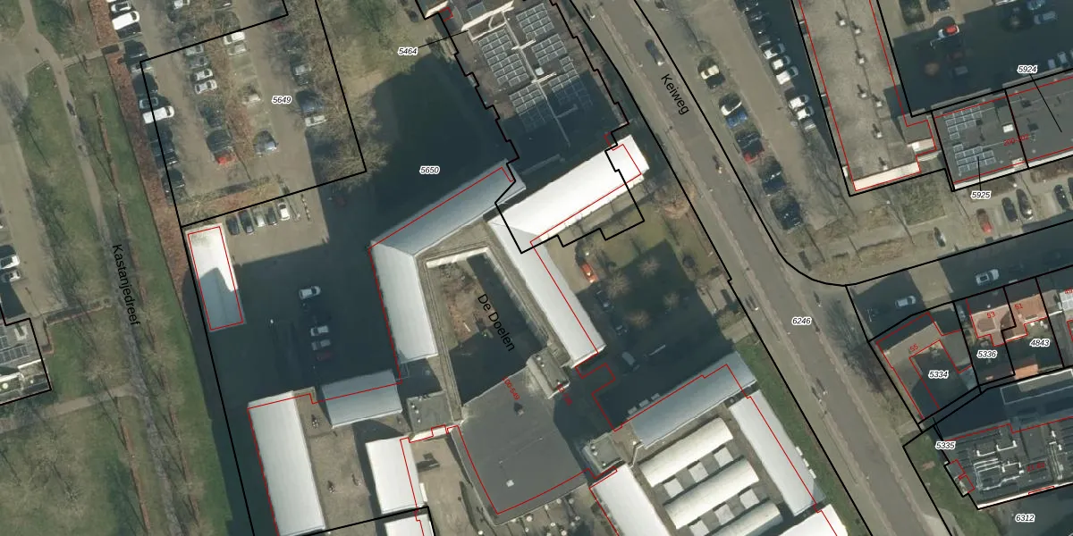 Het perceel waarop De Doelen 529 staat heeft een oppervlakte van 9790 m². Dit is een zeer groot perceel. De perceeloppervlakte wordt geregistreerd door het Kadaster. Gedetailleerde informatie over de maten van dit perceel kunt u vinden in het rapport Kadastrale kaart met maatvoering van De Doelen 529.