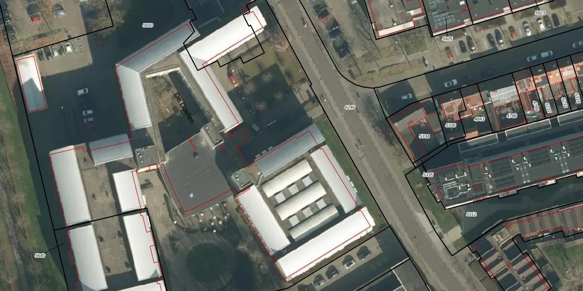 Het perceel waarop De Doelen 535 staat heeft een oppervlakte van 9790 m². Dit is een zeer groot perceel. De perceeloppervlakte wordt geregistreerd door het Kadaster. Gedetailleerde informatie over de maten van dit perceel kunt u vinden in het rapport Kadastrale kaart met maatvoering van De Doelen 535.