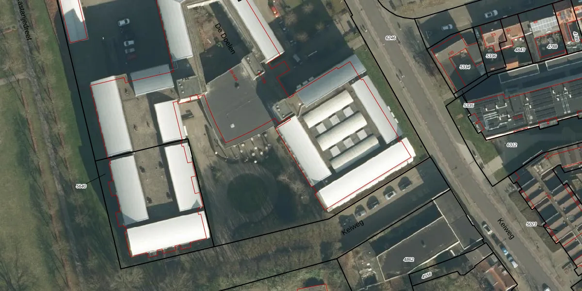 Het perceel waarop De Doelen 549 staat heeft een oppervlakte van 9790 m². Dit is een zeer groot perceel. De perceeloppervlakte wordt geregistreerd door het Kadaster. Gedetailleerde informatie over de maten van dit perceel kunt u vinden in het rapport Kadastrale kaart met maatvoering van De Doelen 549.