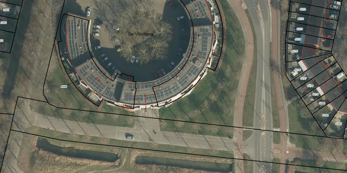 Het perceel waarop De Vliedberg 17 staat heeft een oppervlakte van 1256 m². Dit is een zeer groot perceel. De perceeloppervlakte wordt geregistreerd door het Kadaster. Gedetailleerde informatie over de maten van dit perceel kunt u vinden in het rapport Kadastrale kaart met maatvoering van De Vliedberg 17.