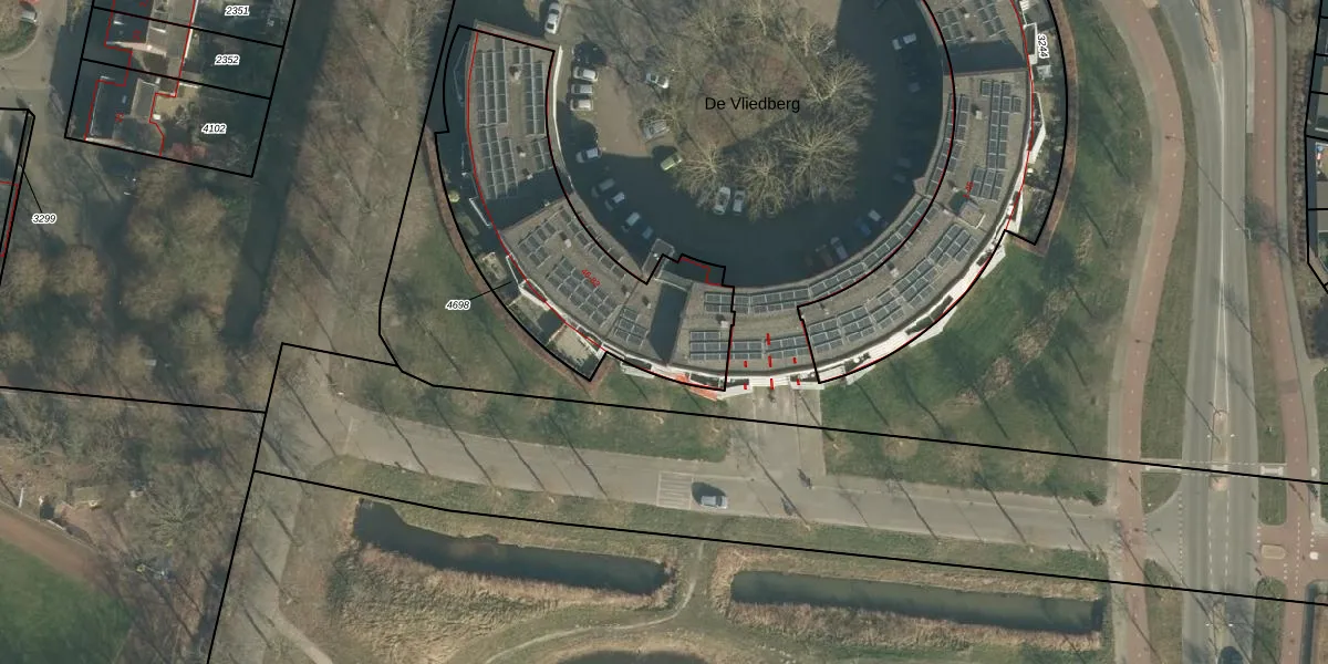 Het perceel waarop De Vliedberg 61 staat heeft een oppervlakte van 1108 m². Dit is een zeer groot perceel. De perceeloppervlakte wordt geregistreerd door het Kadaster. Gedetailleerde informatie over de maten van dit perceel kunt u vinden in het rapport Kadastrale kaart met maatvoering van De Vliedberg 61.