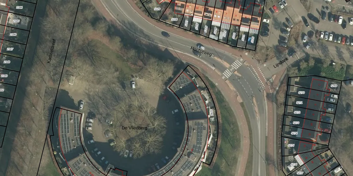 Het perceel waarop De Vliedberg 8 staat heeft een oppervlakte van 1256 m². Dit is een zeer groot perceel. De perceeloppervlakte wordt geregistreerd door het Kadaster. Gedetailleerde informatie over de maten van dit perceel kunt u vinden in het rapport Kadastrale kaart met maatvoering van De Vliedberg 8.