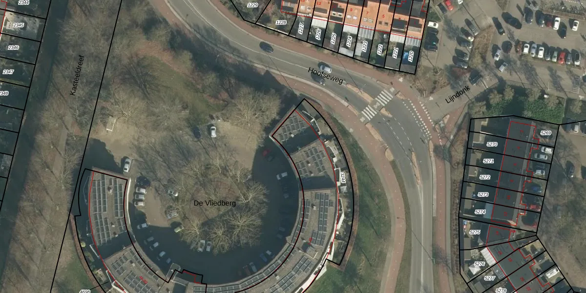 Het perceel waarop De Vliedberg 9 staat heeft een oppervlakte van 1256 m². Dit is een zeer groot perceel. De perceeloppervlakte wordt geregistreerd door het Kadaster. Gedetailleerde informatie over de maten van dit perceel kunt u vinden in het rapport Kadastrale kaart met maatvoering van De Vliedberg 9.