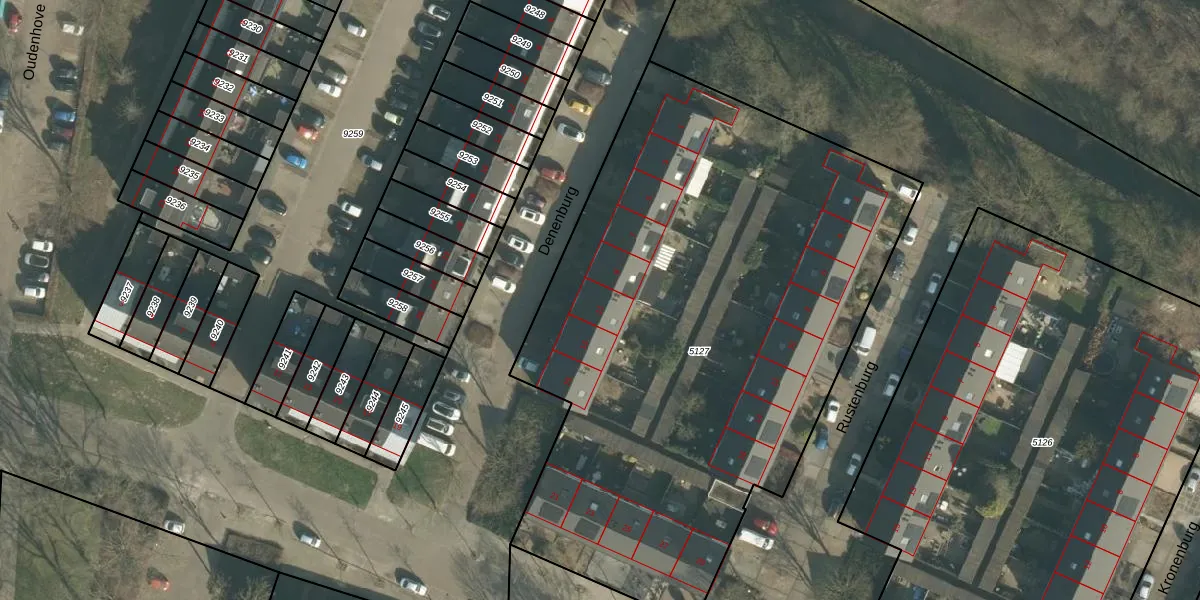 Het perceel waarop Denenburg 11 staat heeft een oppervlakte van 3716 m². Dit is een zeer groot perceel. De perceeloppervlakte wordt geregistreerd door het Kadaster. Gedetailleerde informatie over de maten van dit perceel kunt u vinden in het rapport Kadastrale kaart met maatvoering van Denenburg 11.
