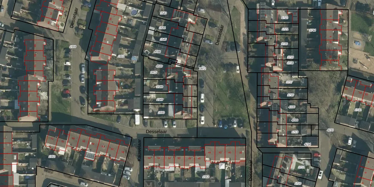 Het perceel waarop Desselaar 13 staat heeft een oppervlakte van 198 m². Dit is een middelgroot perceel. De perceeloppervlakte wordt geregistreerd door het Kadaster. Gedetailleerde informatie over de maten van dit perceel kunt u vinden in het rapport Kadastrale kaart met maatvoering van Desselaar 13.