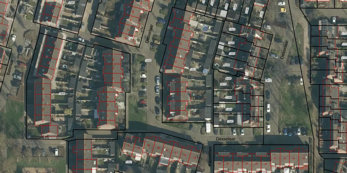 Het perceel waarop Desselaar 25 staat heeft een oppervlakte van 1904 m². Dit is een zeer groot perceel. De perceeloppervlakte wordt geregistreerd door het Kadaster. Gedetailleerde informatie over de maten van dit perceel kunt u vinden in het rapport Kadastrale kaart met maatvoering van Desselaar 25.