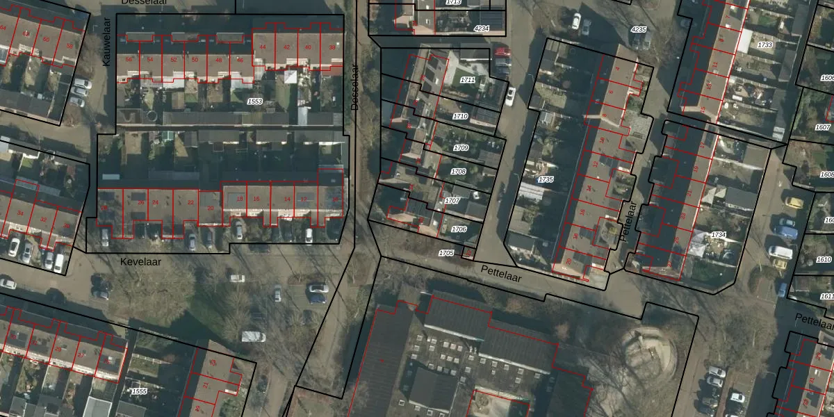 Het perceel waarop Desselaar 36 staat heeft een oppervlakte van 199 m². Dit is een middelgroot perceel. De perceeloppervlakte wordt geregistreerd door het Kadaster. Gedetailleerde informatie over de maten van dit perceel kunt u vinden in het rapport Kadastrale kaart met maatvoering van Desselaar 36.