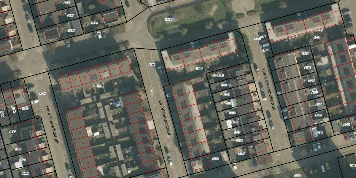 Dr. Vlimmenstraat 13 is gelegen op kadastraal perceel OTH01Q1709. Deze kadastrale aanduiding is uniek en wordt gebruikt door het Kadaster om eigendomsrechten en andere zakelijke rechten vast te leggen. Het perceel maakt onderdeel uit van de kadastrale gemeente Oosterhout.