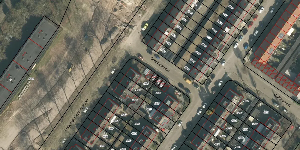 Drebbelstraat 1-G01 is gelegen op kadastraal perceel OTH01M4884. Deze kadastrale aanduiding is uniek en wordt gebruikt door het Kadaster om eigendomsrechten en andere zakelijke rechten vast te leggen. Het perceel maakt onderdeel uit van de kadastrale gemeente Oosterhout.