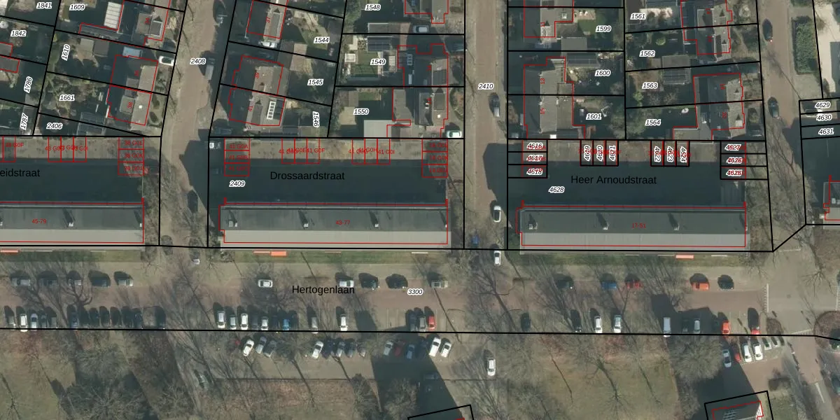 Het perceel waarop Drossaardstraat 53 staat heeft een oppervlakte van 1594 m². Dit is een zeer groot perceel. De perceeloppervlakte wordt geregistreerd door het Kadaster. Gedetailleerde informatie over de maten van dit perceel kunt u vinden in het rapport Kadastrale kaart met maatvoering van Drossaardstraat 53.