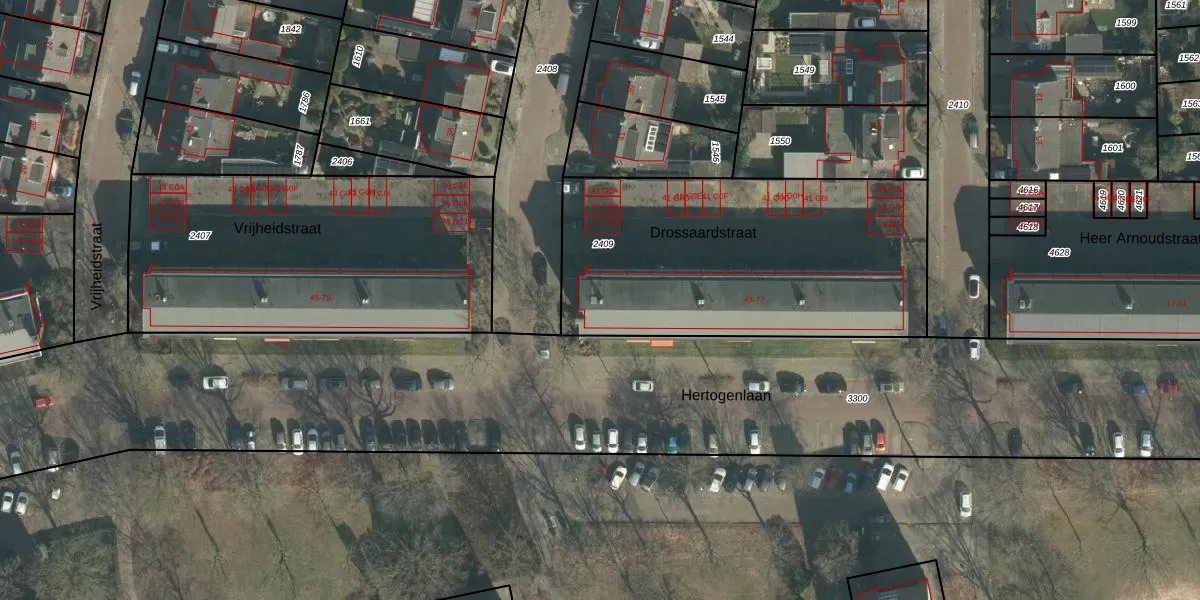 Het perceel waarop Drossaardstraat 55 staat heeft een oppervlakte van 1594 m². Dit is een zeer groot perceel. De perceeloppervlakte wordt geregistreerd door het Kadaster. Gedetailleerde informatie over de maten van dit perceel kunt u vinden in het rapport Kadastrale kaart met maatvoering van Drossaardstraat 55.