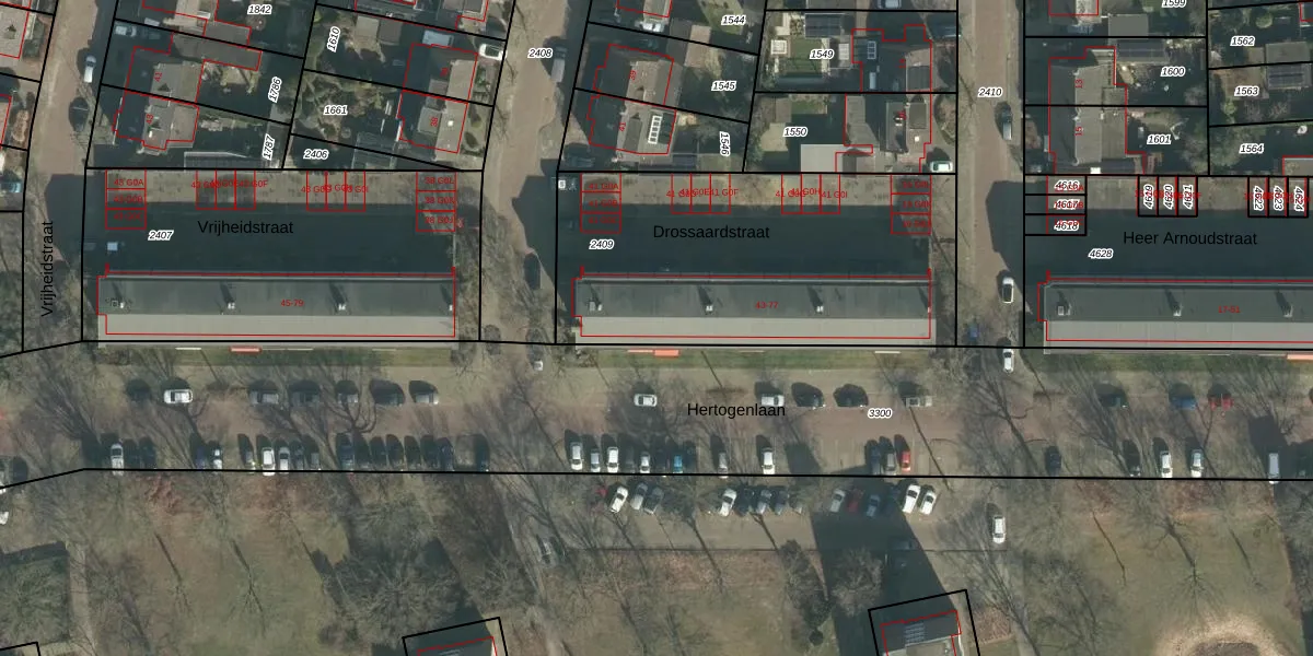 Het perceel waarop Drossaardstraat 69 staat heeft een oppervlakte van 1594 m². Dit is een zeer groot perceel. De perceeloppervlakte wordt geregistreerd door het Kadaster. Gedetailleerde informatie over de maten van dit perceel kunt u vinden in het rapport Kadastrale kaart met maatvoering van Drossaardstraat 69.