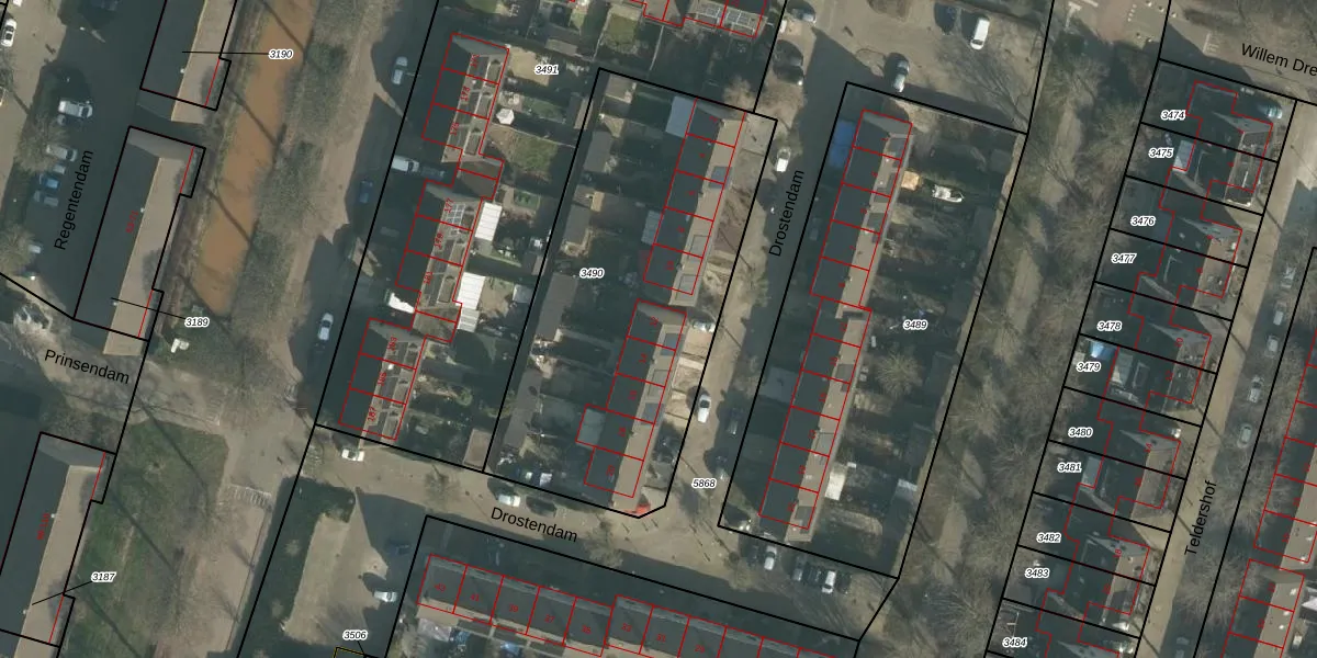 Het perceel waarop Drostendam 12 staat heeft een oppervlakte van 1785 m². Dit is een zeer groot perceel. De perceeloppervlakte wordt geregistreerd door het Kadaster. Gedetailleerde informatie over de maten van dit perceel kunt u vinden in het rapport Kadastrale kaart met maatvoering van Drostendam 12.